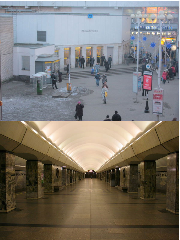 Метро Приморское в Санкт-Петербурге Невско-Василеостровской линии находится на территории 11 муниципального округа Василеостровского района города, является конечной станцией на этой линии. Название получила от близкого расположения к Финскому заливу.